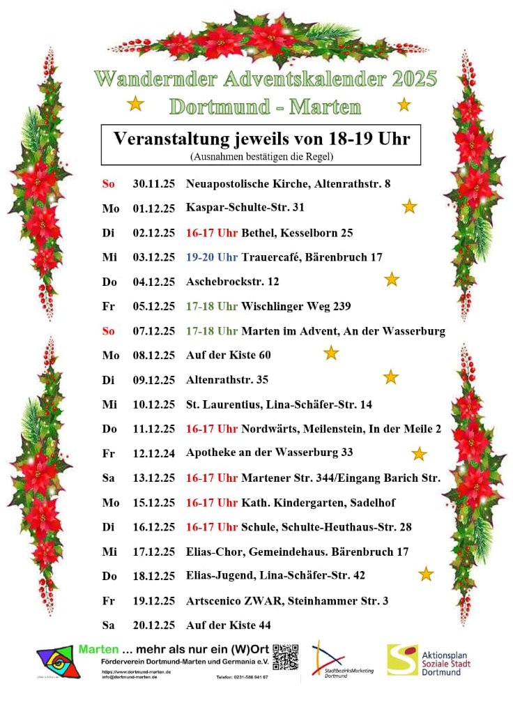 Paul Stephani vom Förderverein Dortmund-Marten und Germania e.V. wird über den gemeinsamen Antrag mit der ZWAR und der Siedlergemeinschaft auf der Kiste zur Beleuchtung des Steinhammer-Parks in der Bezirksvertretung Lütgendortmund berichten.