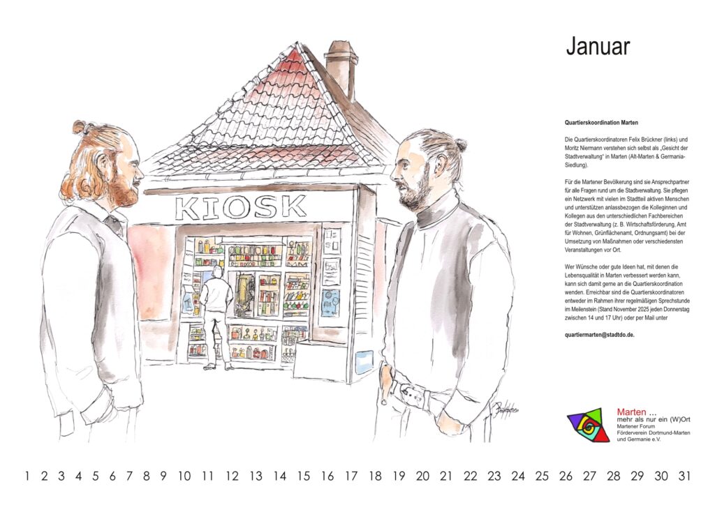 Die Quartierskoordinatoren für Marten bieten donnerstags ihre Sprechstunde im Meilenstein an. Ihr neues Projekt ist eine Umfrage zur Gestaltung der Martener Meile. Sie laden dazu am 18. Februar in den Meilenstein ein. Die Quartierskoordinatoren werden beim Martener Forum ihr Projekt vorstellen.
