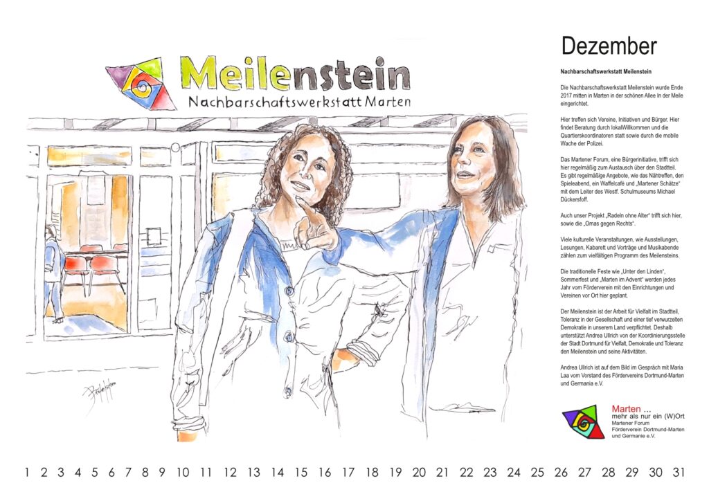 Der Meilenstein schafft im Stadtteil einen lebendigen Treffpunkt verschiedener Angebote und Gruppen. Neu hinzugekommen sind die Omas gegen Rechts – Dortmund-West, die sich regelmäßig im Meilenstein treffen. Die Omas gegen Rechts sind eine zivilgesellschaftliche, überparteiliche Gruppe, die im November 2017 in Österreich gegründet wurde. Sie setzen sich ein für eine freie, demokratische, rechtsstaatliche Gesellschaft und die Würde aller Menschen.